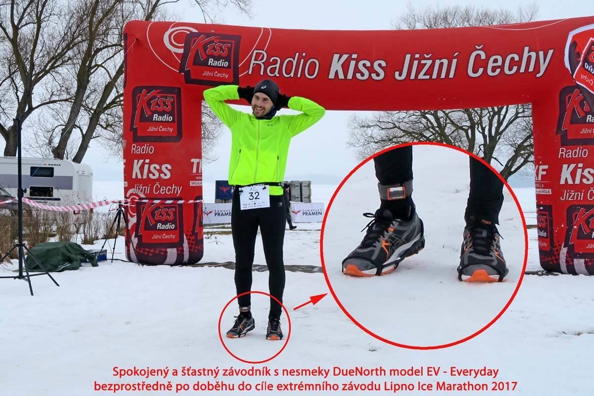 Optimální variantou letos budou nesmeky model LI, nebo AP. Model EV je nejméně vhodný pro běh v nerovném a nezaledněném terénu. Čím více se poběží po březích a nikoli po ledu, nebo čím více se bude střídat hladký led s nerovným ledem, případně sněhovými návějemi, tím výhodnější bude použití nejrobustnějšího, a tím i nejtěžšího, modelu AP. Pokud se více poběží po rovnějším a méně zavátém ledu, tím výhodnější bude lehčí model LI, nebo dokonce v případě hladkého ledu, zcela nejlehčí model EV. Vloni se celá trať běžela po zamrzlém Lipně na velmi nerovném, lépe řečeno hrbolatém, ledu bez hlubších sněhových návějí. I tak několik běžců absolvovalo celou maratonskou trať také s modelem nesmeků EV a v cíli si svou volbu pochvalovali.